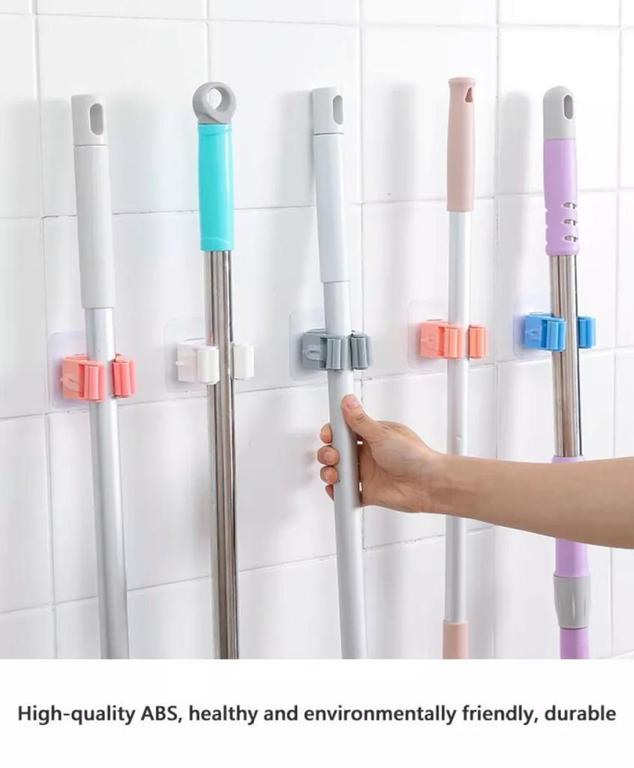 - Designed to hold mops, brooms, and other tools with handles securely on walls.