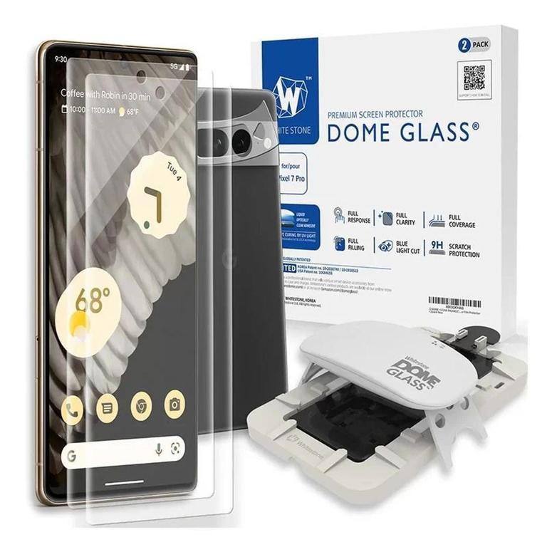 Whitestone Dome Glass Screen Protector for Google Pixel 7 Pro – Includes 2 Glass Protectors and 1 Lens Protector with UV Installation Kit