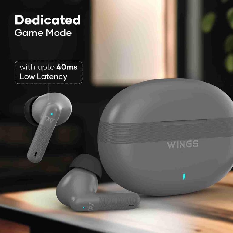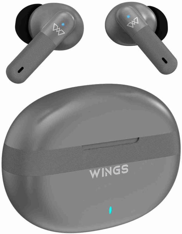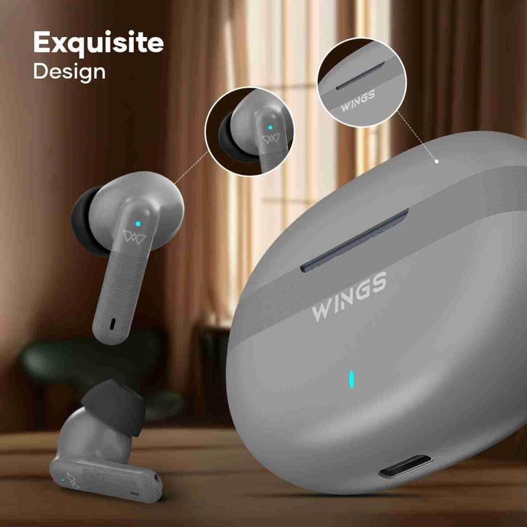 WINGS Flobuds 325 True Wireless Bluetooth Headset with Quad ENC Smart Mics and 13MM Drivers (Grey)