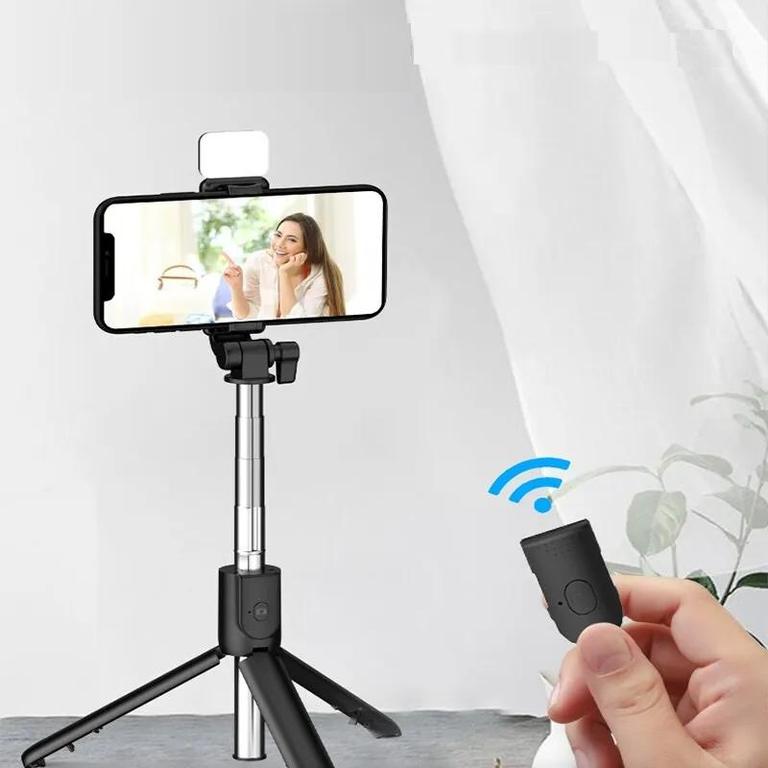 Wireless 4-in-1 Selfie Stick Tripod with Adjustable Heights (R1S/R1/JC16/JC16H) for All Phones, Includes Bluetooth Shutter and Light Options