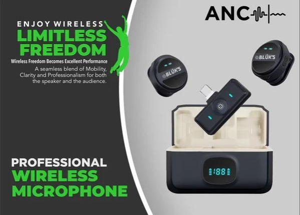 The BLUK'S BX-12 is a professional wireless microphone tailored for content creators, teachers, podcasters, broadcasters, and performers. With Active Noise Cancellation (ANC) and a plug-and-play setup, it ensures optimal audio quality in various environments.
