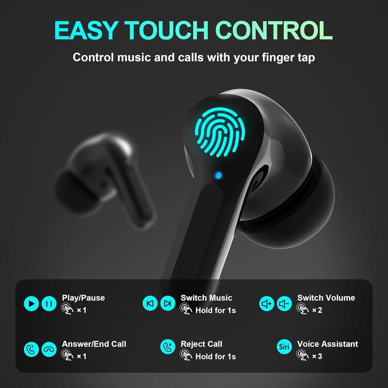 - Sensitive Touch Control & Universal Compatibility: Effortlessly make calls and pause or switch songs. And offering wide-ranging compatibility, wireless earphones can seamlessly pair with any Bluetooth-enabled device, including mobile phones, tablets, computers, TVs etc.