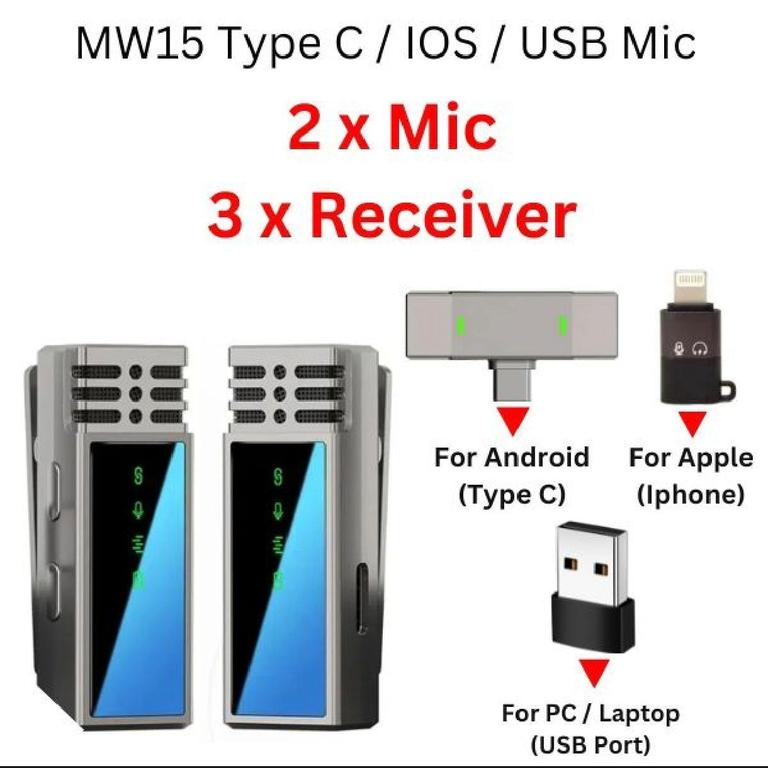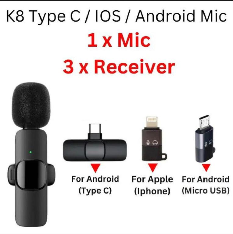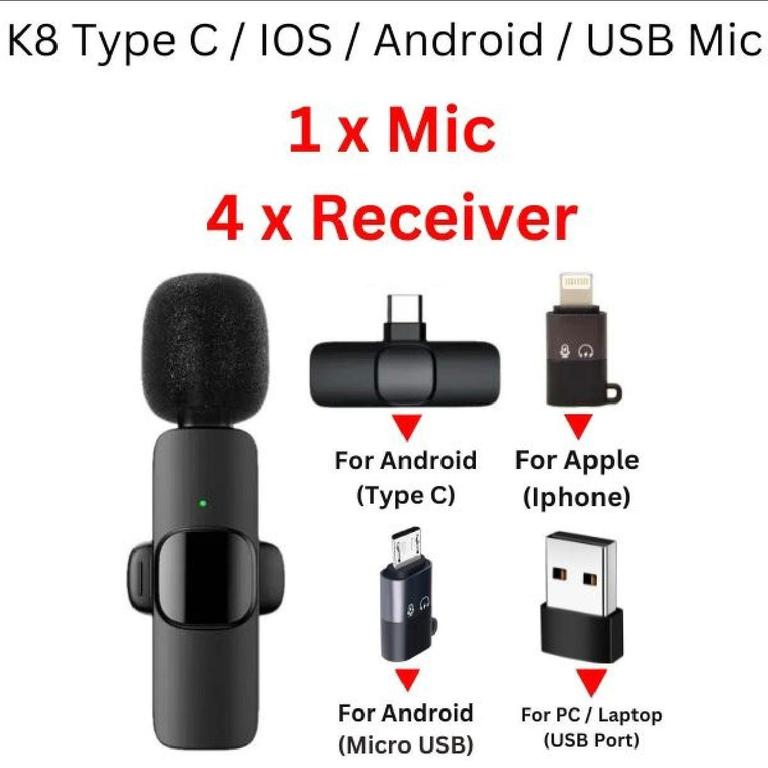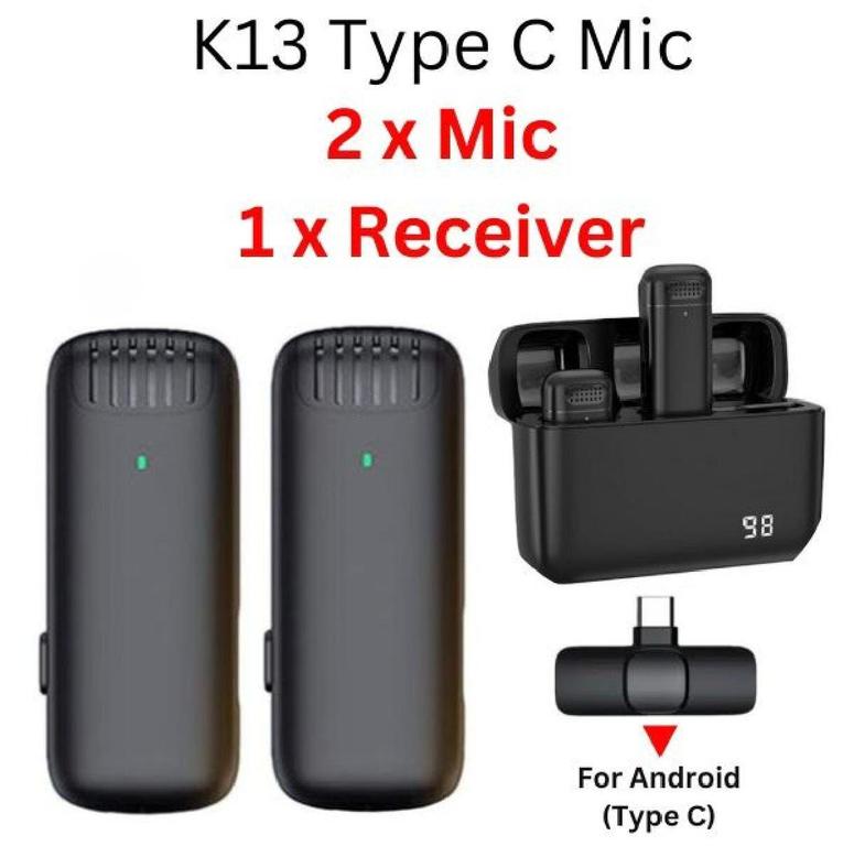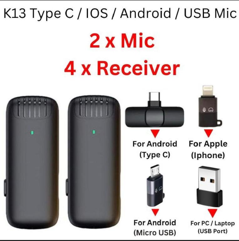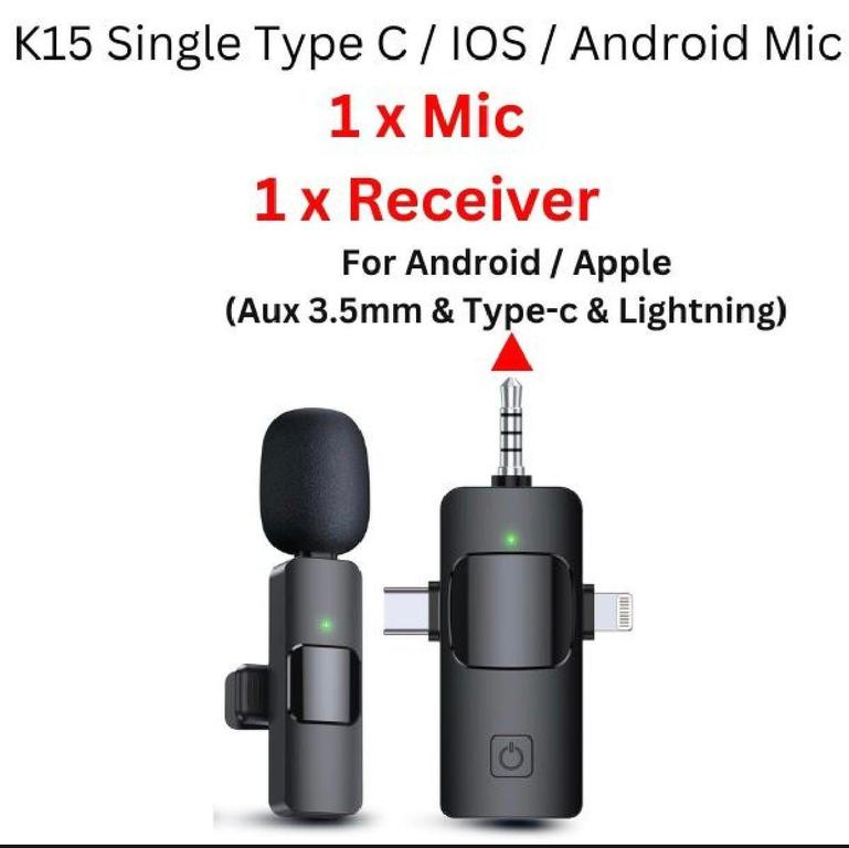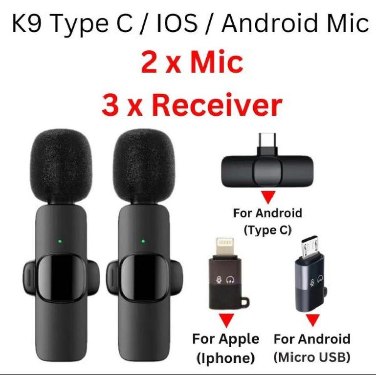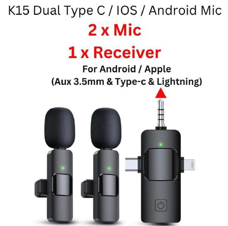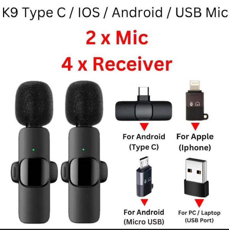 Wireless Microphone for Type C, iOS, Android, USB, and AUX 3.5mm - Models K8, K9, K13, SX8, SX9, K15, K35, M15 (Single/Double) for Interviews, Vlogging, and Podcasts