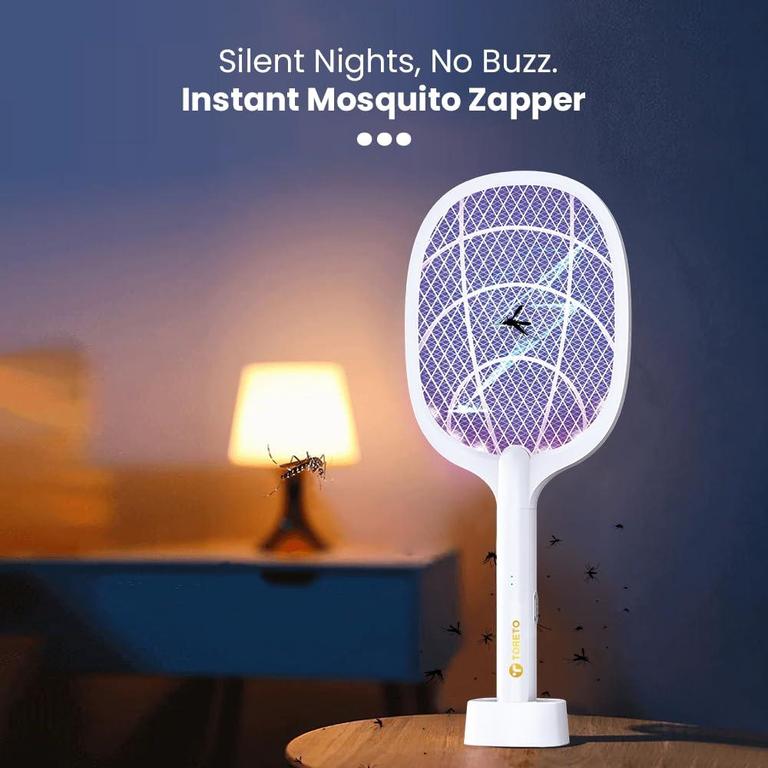 Zayraz 2 in 1Cordless Battery Power Electric Home Mosquito Killer Rechargeable mosquito racket UV LED Light Flying Insect Killer & Bug Zapper Lamp with Stand, Original, Advanced, Heavy duty USB Handheld Bat 400mAh Flies, Bees, Moths killer night lamp