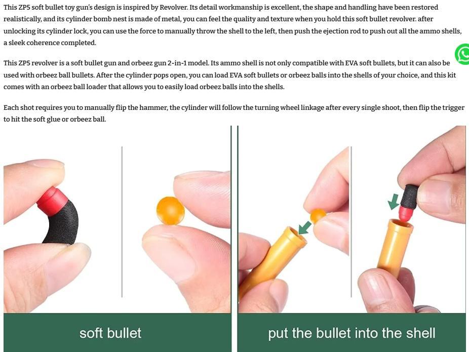 realistically, and its cylinder nest is made of metal, you can feel the quality and texure when you hold this soft bullet.after it